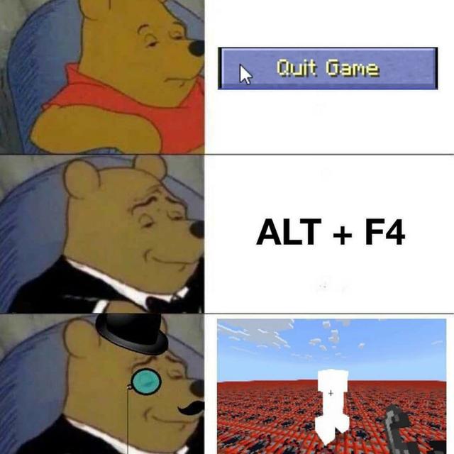结束游戏的方式有很多种,最为常见的就是直接退出游戏了,但有的玩家偏偏不喜欢这么简单的方式,想要用一些奇特的方式结束游戏,比如电脑玩家ALT+F4的组合按键,同样可以结束游戏进程。但还有的玩家就喜欢整些花里胡哨的,创建一个满是TNT的世界,然后点燃一个苦力怕,一般配置的电脑随着TNT的爆炸必然会游戏崩溃,甚至是死机都有可能。但仔细想想,这好像确实也是一个结束游戏的方式。