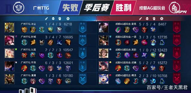 KPL季后赛第三周的收官之战,成都AG超玩会对阵到广州TTG,这两支队伍在上周刚刚交过手,当时广州TTG4-2战胜了AG超玩会,也将AG送进了败者组。如今两边再次交手,气势上来说已经完全不同了,AG刚刚零封了estar,全队都很兴奋,TTG则是刚输给Hero,还需要调整。