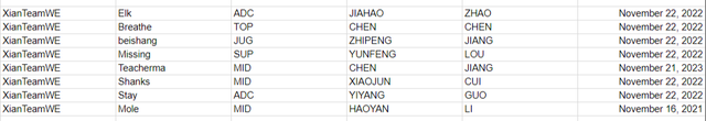 最后,就是年轻的WE了。从WE选手的合同库情况来看,除了Mole之外,其余选手都是签到了2022年。不难看出,WE的管理对于这群年轻人还是毫无保留的信任的。并且,WE的这群新人们也并没有辜负我们的期望,仍然不断在成长着。