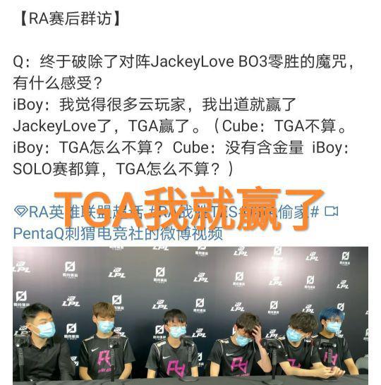 iBoy直言自己TGA就击败了JKL