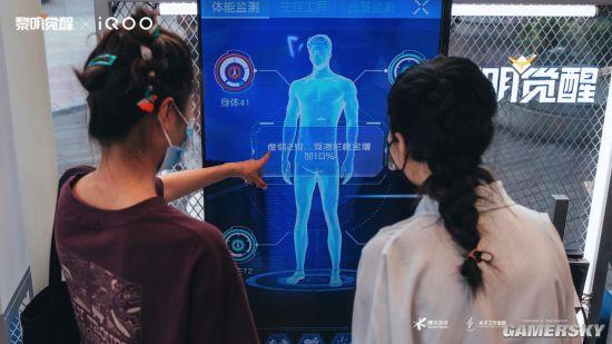 在展会的现场,布置有很多充满沉浸感的装置。比如有一台能扫描指纹,然后对身体生理指标进行展示的“体能检测”机。这台机器是参照《黎明觉醒》的生理监测机制进行设计的,游戏提供了身体、精神、卫生和代谢四个维度共十二项指标,来展示角色的健康状况,一旦某一项健康值过低,就会直接反馈在战斗过程中。
