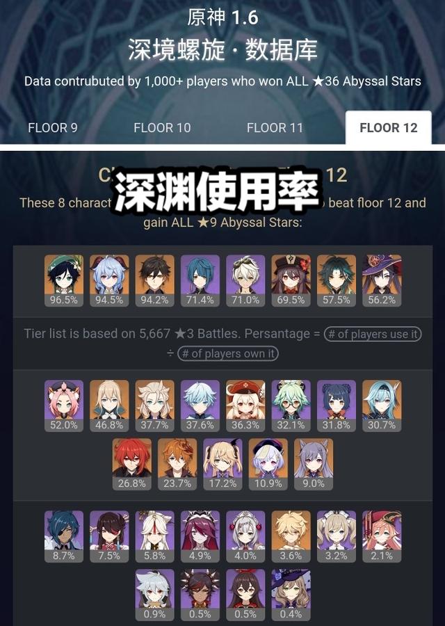 在深渊12层的使用率数据中,我们可以发现前十名有7个五星角色【温迪、甘雨、钟离、胡桃、魈、莫娜和琴】3个四星角色【行秋、班尼特和迪奥娜】其中护盾角色只有两个【钟离和迪奥娜】而且迪奥娜超过了优菈、阿贝多和迪卢克等五星角色,差点就要晋升到前八名,真的是备受玩家青睐,但是问题也随之出现了,迪奥娜的护盾完全比不上钟离,生命值也没有钟离厚,作为小脆皮的迪奥娜为什么她在深渊的出场率这么高呢?