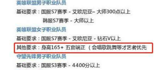 例如曾经LGD的招聘要求:男选手至少要大师300点以上,而女选手仅需要钻石五,但却在颜值相貌上增添了附加要求,很显然她们不过是想借着女性竞技的旗号,刷一波注意力罢了。