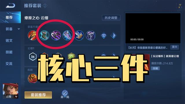 云樱这位英雄不受暴击和攻速的影响,所以,在出装上玩家应当格外注意,不要选择使用无意义装备,她应该如何出装?目前,有很多方案,但是多数的方案都离不开三件装备,它们分别是黑切、冰脉和CD鞋,在玩家的CD足够以后,CD鞋可以调换成抵抗之靴。