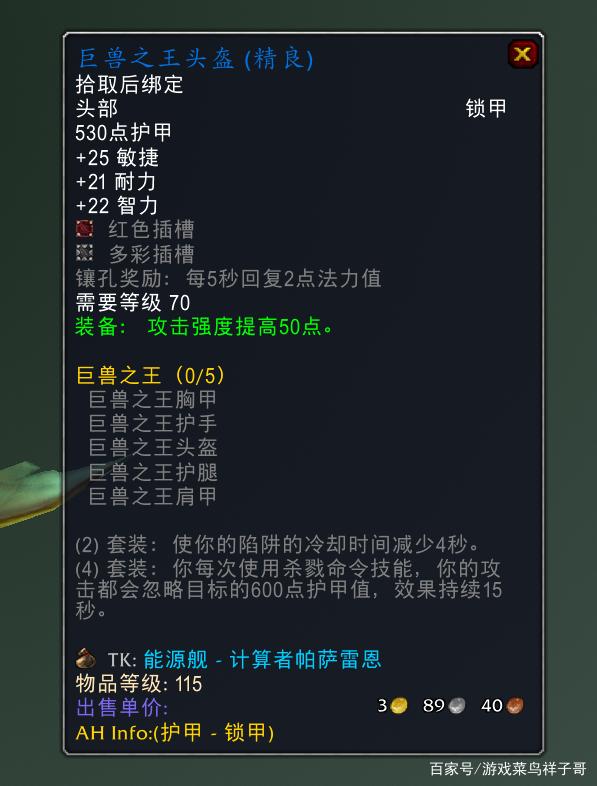 2.《游戏菜鸟祥子哥_魔兽世界:猎人的巨兽套装 它真的比紫色的T4套装要好吗?》仅供读者参考,本网站未对该内容进行证实,对其原创性、真实性、完整性、及时性不作任何保证。