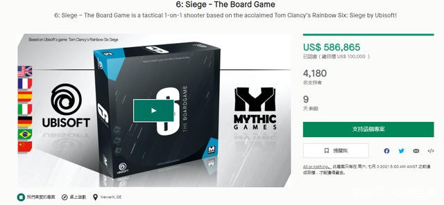 今天(6月23日),《彩虹六号:围攻》桌游在Kickstarter上开启了众筹,并接受玩家预定。