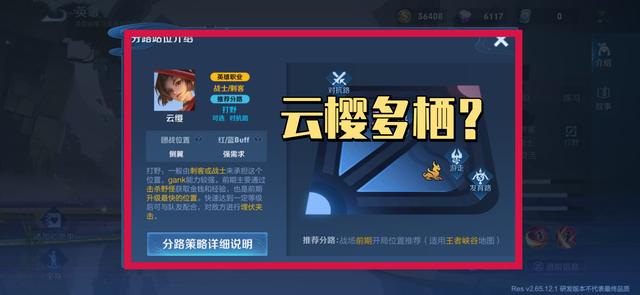 在打野上,云樱守护野区能力弱;在对线上,因位移等问题,也并非强势英雄,因此,云樱多栖的定位非常尴尬,如果非要选的话野区是最好的选择,因为云樱是一位依赖技能穿插普攻的英雄。