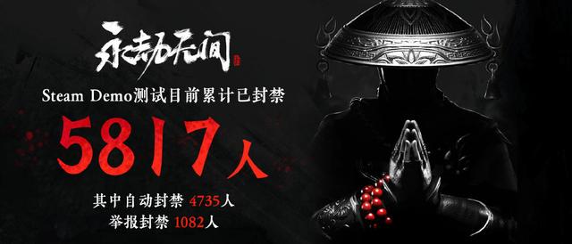 官方发布公告称已累计封禁5817人,其中自动封禁4735人,玩家举报封禁1082人,可见永劫无间的主动防御能力还算不错,并且玩家的举报也起到了一定效果,在测试尾声公布这样一组数据,无形中给了玩家很多信心,官方积极处理外挂等作弊问题,玩家自然是拍手叫好的,大家对于游戏的正式上线也就有了更多的期待,只要官方积极应对作弊的态度摆了出来,游戏公平性有了保证,那么永劫无间这样一款画面、特效以及打击感都很到位的游戏,可玩性还是很高的。