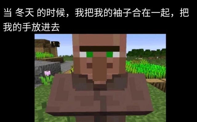 不知道你有没有在村民的身上看到过自己的影子,如果没有,看到这张图片你便清楚了。村民有着一个标志性的动作,将双手插在袖套里。这一幕像极了冬天的我们,在天气冷的时候将双手插在袖套里。突然将村民与自己对比,你觉得还是比较十分相似的。