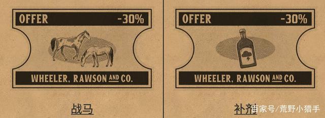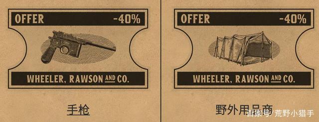 您若是没有佩枪就无法成为雇佣枪手:遍布五大州的枪械铺提供所有手枪六折。克里普斯的野外用品商也推出所有商品六折。全州的马厩提供战马七折,还有所有补剂(包括哈莉特·达文波特所出售的补剂)七折。