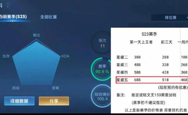 那么你知道赛季初第一天上王者多少钱吗?价格相差何止十倍?