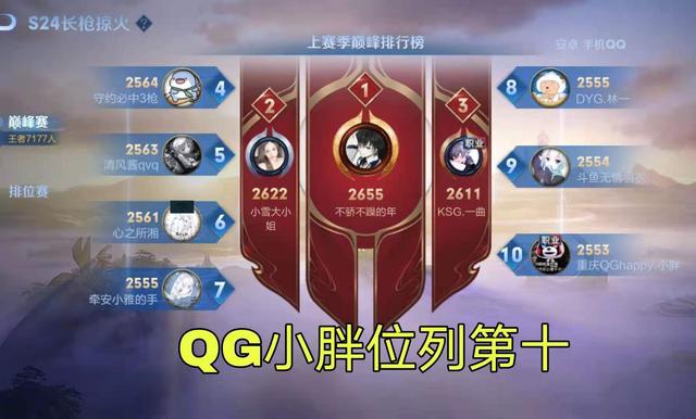 新版本S24赛季已经开始,这也意味着S23赛季的巅峰赛最终名次确定了下来,而QGhappy的打野选手小胖,以2553分的成绩锁定在了第十名。这个分数虽然没能挤进前三,但也已经非常出色了,一般的玩家可以说是望尘莫及,估计也就那些顶尖玩家和职业选手才有这个能力。