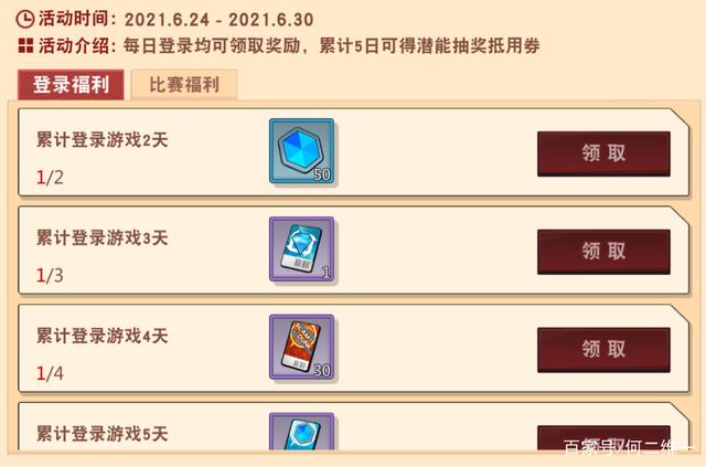 这周的每日累充活动相对上一周而言是将每个档位的钻石奖励给改成了潜能夺宝券,这个也会和过两天的潜能活动对应上,不过其性价比还是留到待会我们说扭蛋活动的时候再讲。