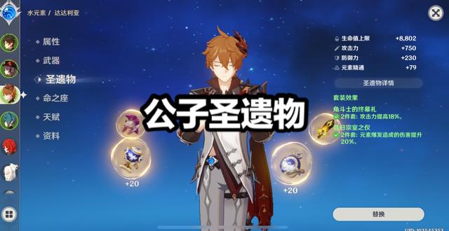 作为一个老玩公子的玩家,对于公子的圣遗物我还是有自己独特的理解,根据玩法不同大致分为两种流派,第一种是【大招流】大招流的公子可以选择宗室+角斗士或者宗室+两件水套,前者可以获得高额的攻击力加成以及大招的增伤效果,后者则是可以获得水元素伤害加成和大招增伤,个人推荐前者,因为水元素伤害杯有了后,额外的水元素伤害加成,其实微乎其微。第二就是【断水流】核心就是水套的四件套效果,增加普攻的伤害,尤其是被加强后的公子。