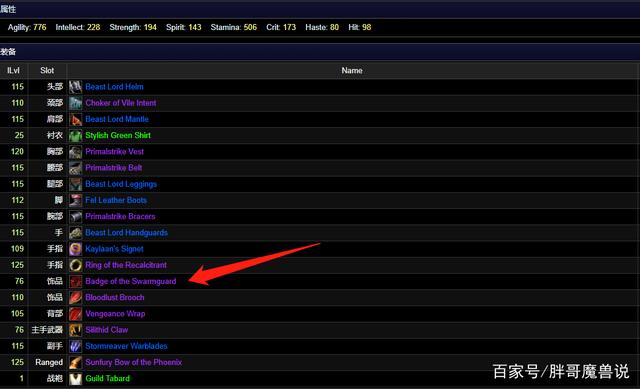 按理说TBC版本开放之后,P1阶段物理系职业的毕业饰品就是龙脊奖章加嗜血胸针,即便是拿不到龙脊奖章,也会选择搭配沙漏或者算盘,然而WCL上很多榜上有名的猎人玩家却还在使用虫群卫士徽章。这种情况也给玩家们带来了一定的疑惑,毕竟NAXX中的装备到了TBC中都被淘汰掉了,为什么虫群卫士徽章反而会受到玩家们的青睐呢?下面我们来分析一下这件装备的价值。
