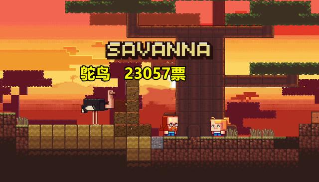 得票数第三的同样是一个大家十分熟悉的生物,它就是鸵鸟,得票数23057,比猫鼬少了一丢丢。鸵鸟和猫鼬属于同时期被提及的生物,在Minecon 2018中被玩家投票选择,最终还是落败于针叶林的狐狸。看到这里我就更纳闷了,你说狐狸没被玩家提出获得第一还能理解,你鸵鸟和猫鼬同时被提出,而且猫鼬在反馈界面得票数还更高,为什么鸵鸟最终得票数在猫鼬前面?看到后面我就明白了。