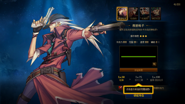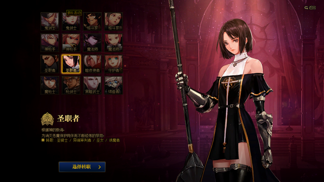 角色创建系统改版,页面就是这样,需要选择一个角色,接着需要点击选择转职。