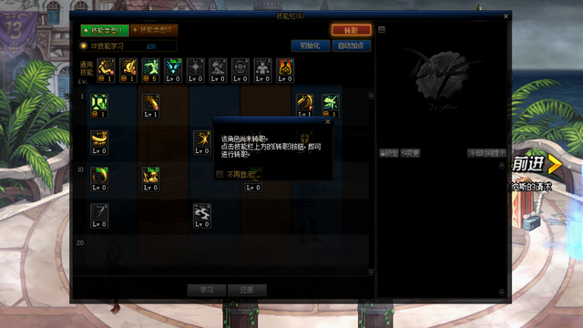 在技能学习页面可以选择【转职】UI进行转职。