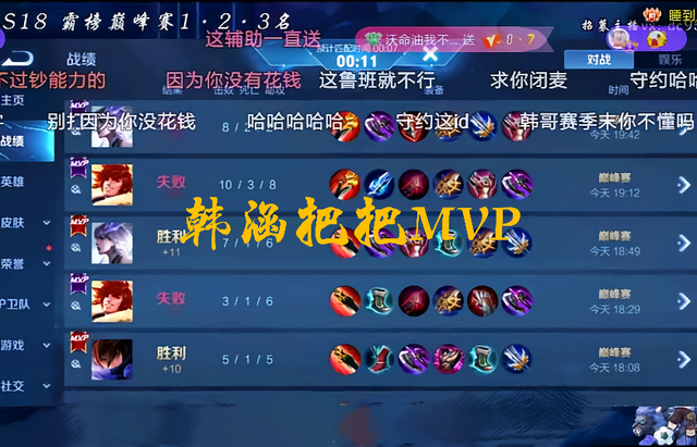 为什么这么说呢?通常情况下,赛季末的“妖鬼蛇神”队友往往最多,很多时候光靠你自己发挥好没用,还要祈求队友别拖后腿。这个赛季韩涵输得快要崩溃,原因就是不管他打得有多好,但就是死活赢不了,把把都是败方MVP,最后只落得个50名开外。