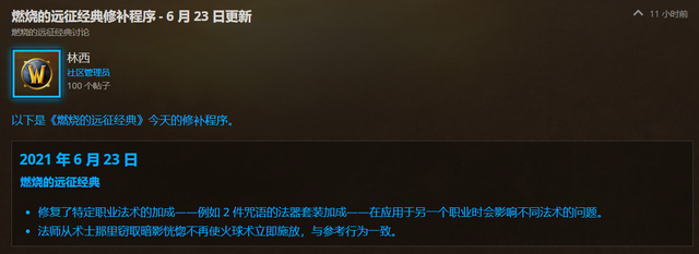 网友们立即将这个问题上报给暴雪,没过多久暴雪就发布了蓝贴,并且热修了这个问题。