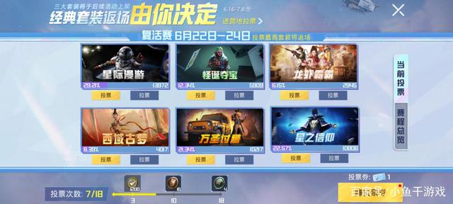 大家好,欢迎来到由小鱼干开讲的《吃鸡新鲜事速报》,这段时间上架的皮肤返场投票活动,终于也是结束了。部分投票结果可以说是有些意外,但其实又在情理之中。