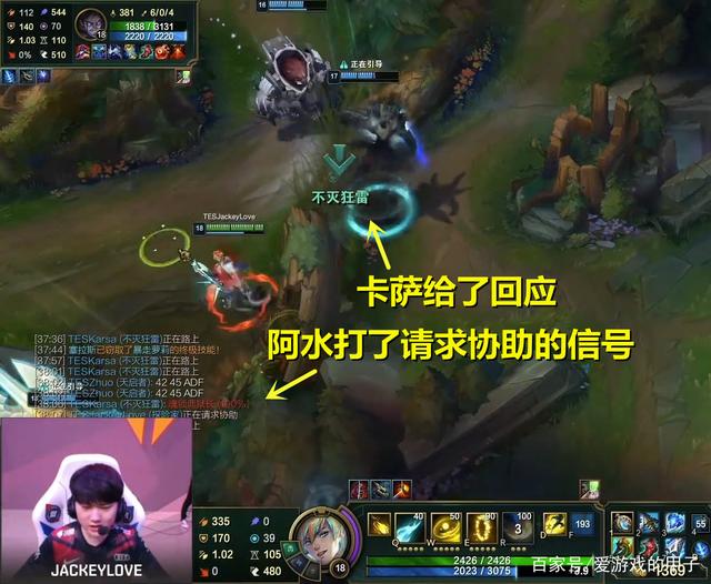 其实TES打大龙不回去守家,是因为阿水,他在撤退的时候跑到了野区,然后一直徘徊想要找机会,随后阿水就开始张嘴说话并且打了1个请求协助的信号,也就是让队友打大龙,看到阿水的信号,队友开始聚集过来。