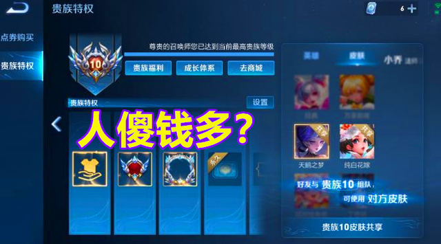 在王者荣耀这款游戏里,一直都听说有些玩家都有仇富的心理,比如遇见贵族等级高的玩家,当和这些玩家匹配到一起的时候,那么就会刻意不和他们进行配合,又或者是看到皮肤比较稀有的队友,也会有这种心理,甚至有很多玩家觉得,如果贵族等级比较高的话,那么就是瞎充值,人傻钱多的代表,就是为了满足的自己的虚荣心,其实这么想的话你就错了。