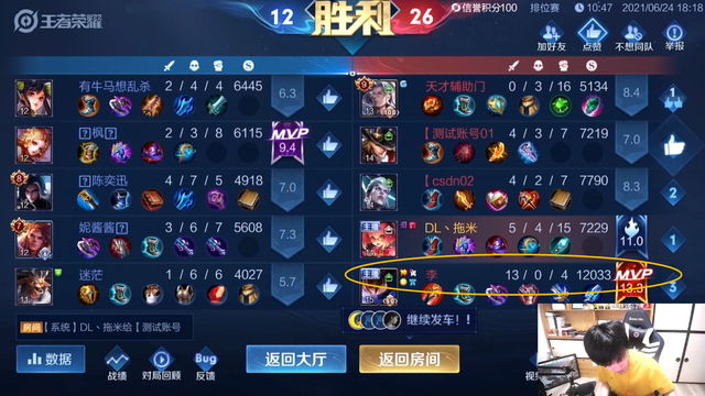 而在翻车的这一局中,拖米使用了米莱狄,李知恩则是使用了自己非常招牌的镜,两位策划则是分别选择了新英雄云缨以及马可波罗,拖米的“大弟子”则是使用了刘邦。不得不说,从整场的表现来看,李知恩真不愧是“野王”。因为在前两局的开黑中,李知恩就打出了非常Carry的表现,更是在第一局中,李知恩凭借着澜打出了13-0-4的豪华数据。对于李知恩的表现,拖米也是对策划开玩笑表示,“这次的策划面对面,自己代表的是普通玩家,而李知恩代表的则是大神玩家。”