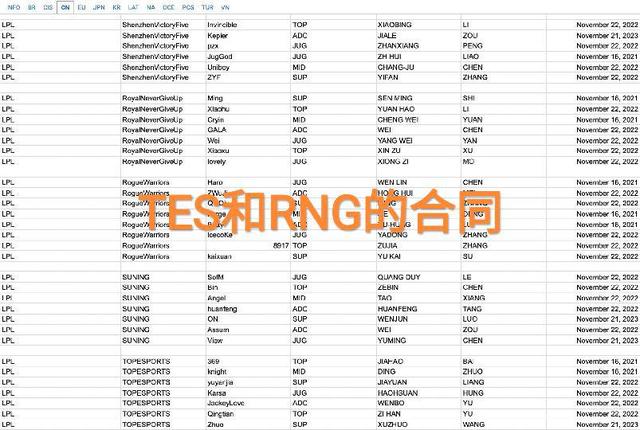 相信绝大多数的玩家对于lpl赛区还是比较关注的,作为电竞行业的先驱者,这几年的时间里,lpl赛区的整体发展是非常迅猛的,战队数量也是不断提升,现在已经拥有了17支队伍。职业选手数量的提升也为各大战队带来了很多的困扰,可能多支战队的资金比较充裕,但是却买不到实力较强的队员,有的时候双向选择是很重要的。就在最近,拳头官方也是正式更新了lpl赛区各大战队的合同库,能够看到在这一次的更新后,有多名选手的合同是在今年比赛结束到期的,到时候lpl赛区肯定会发生很多的变化。