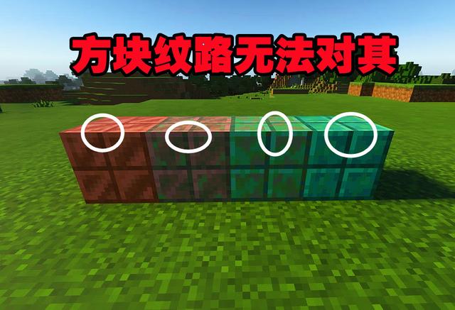 大家知道在最新版本中,终于增加了一种新的矿物质,就是铜矿。这次更新的铜矿可以在主世界地下矿脉生成,玩家采集后可以直接获得铜锭,9个铜锭可以合成一个铜方块,而铜方块会随时间流逝而逐渐锈蚀,材质也会逐渐变为青绿色。不过卡特曼竟然发现了一个问题,这就是每个方块当中的纹路是没有办法连接起来的!大家可以仔细看,在铜方块的6个平面是看不出任何问题的,都是标准的“十字切”,但是当每个面连接在一起的时候,我们就可以发现根本就是没有对齐,这纹路就直接连接不起来,简直是坑死强迫症玩家。