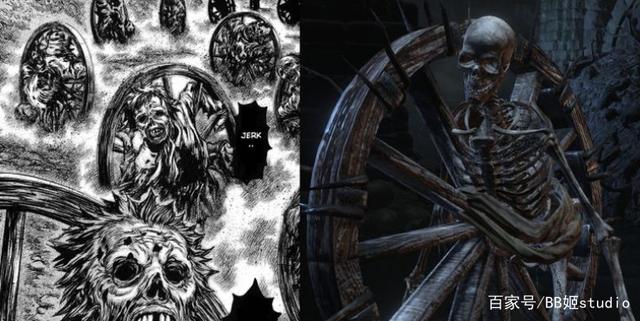 但实际上,宫崎英高对于剑风的借鉴,是准确把握在致敬的尺度上的。他确实用了很多剑风里的元素,但也没不少人想的那么多。一些人之所以真信了老贼在“抓着一部剑风抄”,很可能是因为自己接触的作品里,只有剑风和黑魂属于黑暗奇幻的范畴。