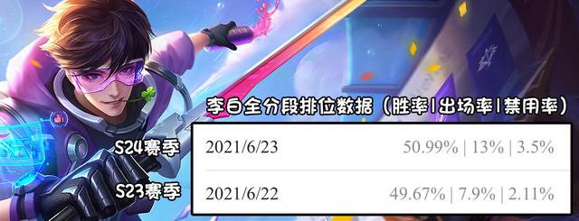 其次就是李白的增强,李白在体验服中被增强了一技能的伤害和冷却,使得李白在前期拥有了较强的立足之地,至少在保住自己野区这一块相比之前提升了许多,改变之后同样李白的出场率也相比之前高了许多,很多喜爱李白的玩家们被压抑太久,而到s24赛季后终于有所爆发。当然增强的并不算多,但至少不会那么卑微。
