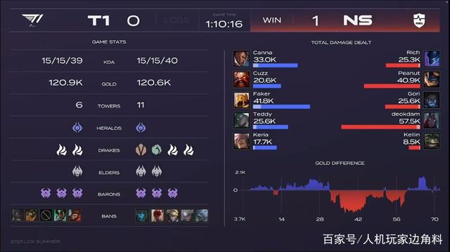 “70分钟的比赛,T1的AD塞纳叠了300层被动。但硬是没有一点作用,T1五人全都被桎梏住了一样,沉浸在被迫守塔和被迫拉扯的氛围中。70分钟,T1甚至连对面的高地都没有破掉一座,沙皇加塞纳这样的强力后期阵容即使打赢团战,也推进不了半毫。NS硬是用兵线活活运营掉了整场比赛。”