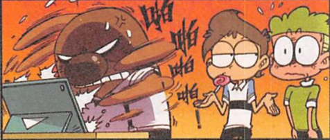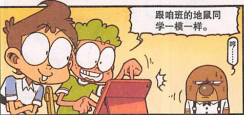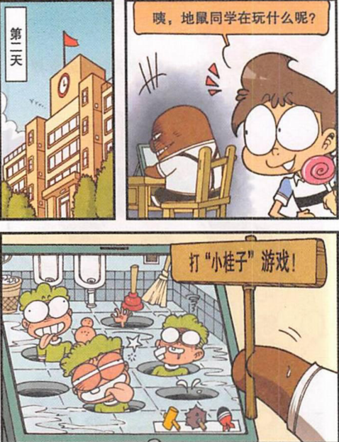 第二天地鼠同学也开始往学校带平板电脑了,而且也在玩游戏,一个人坐在角落里玩得很疯狂呢,星太奇拿着棒棒糖去问他在玩什么游戏,地鼠同学说自己在玩打小桂子游戏,看来昨天的事让地鼠同学怀恨在心了呢。