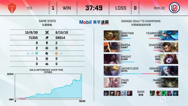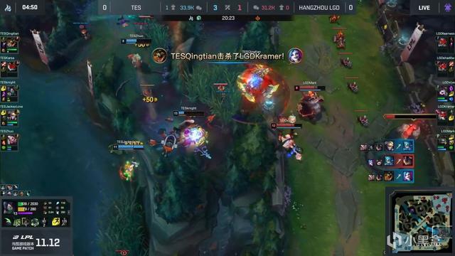 中上野发挥出色,AD稳定输出,TES 1-0 领先LGD!