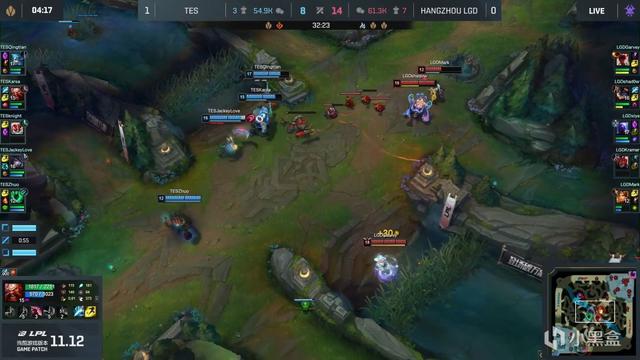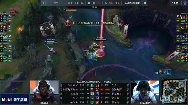 8:06,LGD先开先锋,Mark日女提前支援,TES放掉,由LGD控下第一条先锋!