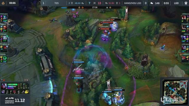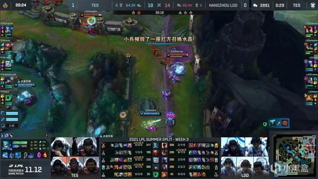 36:30,LGD卡住TES位置,逼掉中路二塔还要再拿高地,Karsa大招留人,LGD往TES上路二塔方向撤退,后续双TP落下,TES一波结束比赛!以1-0 暂时领先LGD!