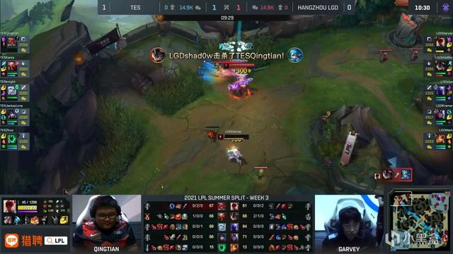 6月25日,杭州主场,LGD大战TES!第二局比赛,前期LGD又是Shadow打开局面,军训qingtian格温,中后期团战,Knight输出拉满,多次团战打出击杀,jkl厄斐琉斯也是稳定输出!后期,瑞兹保留节目反复偷家,最终是Knight佛耶戈力挽狂澜打赢团战!TES 2-0 战胜LGD!
