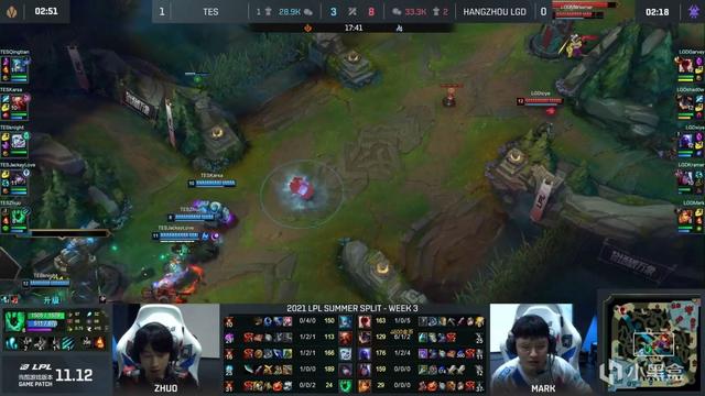 33:10,嘉伟野区被抓住,这边LGD想策应嘉伟撤退,结果没TES打出零换二,一波拿下大龙!