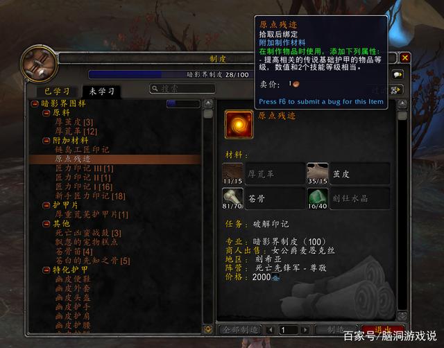 “原点残迹”需要图纸,和新版本的阵营声望挂钩