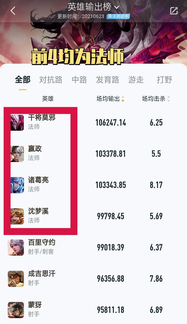炮台型法师的输出环境,相比射手而言,要好一些!所以,他们的输出数据能够力压射手,但这并不代表他们的胜率会高于射手。