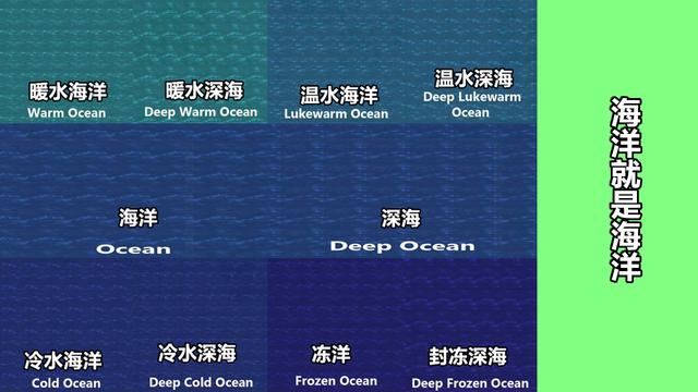 如果你玩MC的时候观察足够仔细,你会发现MC的海洋也是大有学问的,每一个地方的海洋颜色状态都是不尽相同的,这是怎么回事呢?其实不同颜色状态的海洋代表着海洋的类型,比如温水海洋和冷水海洋,温水海洋就要比冷水海洋颜色更浅一些。诸如此类的细节还有很多,但多数玩家是没有注意到的,在他们眼中,海洋就是海洋,管他什么温水冷水。