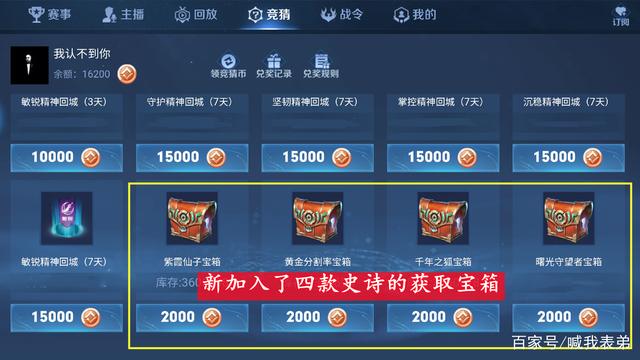 那么除了这次李白的限定星元得到返场之外,还需要知道的就是,在星元返场的相同时间里面,赛事方面对竞猜页面的兑换商城也是进行了更新,而这次更新出来的可兑换内容里面,是直接包含了四款史诗皮肤的获取宝箱。