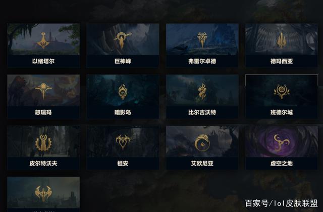 排除已曝光的第1系列光明哨兵皮肤以及已知的第2系列格雷福斯和阿克尚,剩余的地区就还有以绪塔尔,暗影岛,班德尔城,皮尔特沃夫,祖安,虚空之地。