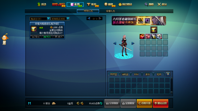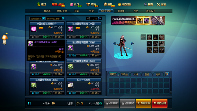 活动商店里的完美装扮合成器是可以用代币券购买,2000点券一张,现在购买一张,等7月1日更新,再买一张,这样就可以给还没有天空的号用来合成天空了,不过需要4件高级装扮才能合成。