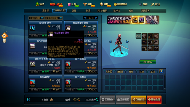 看看自己账号里的那些角色的仓库还没有升满级的,特别是部分在偷跑刃影的玩家,那么用来购买仓库扩展券是非常划算的。