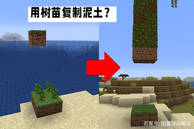 除了海豚、铁砧复制外,玩家还能用丛林木树苗来复制泥土,在4个树苗的任意一角放置泥土(草方块也可),然后使用骨粉催熟树苗,当树苗长大时会凭空补齐剩余的3个泥土,其中原理,图酱也无法解释。
