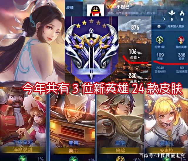 s24新赛季更新的浪潮还没有过去,官方无意之间的举动再次掀起轩然大波。从放出的官方账号截图可以看出,英雄数量109位,皮肤数量高达388款。新赛季开启之后,新英雄云缨便上线到正式服,即便如此,我们玩家的游戏账号英雄只有106位,皮肤366款。也就是说,在接下来的时间里,官方还将上线3位新英雄和24款新皮肤。皮肤的话目前还有很多爆料但没上线的,例如:大乔白鹤梁神女,干将莫邪胡桃国玩偶,安琪拉漫客少女,扁鹊和典韦勇者,守约世冠,西施FMVP,王昭君七夕,司马懿史诗等。