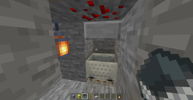 接下来就是见证奇迹的时刻,拉下这个拉杆,活塞会把你面前的普通方块压进你的头里,你将被整体挤压进这个空间内,这时,只要进入潜行状态,地下的世界就任由大家探视啦,哪里有矿石,哪里有地牢,废弃矿坑等等,就一清二楚啦~