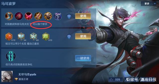 大家也都知道,国一能稳住一般都是很牛的大神,对英雄的理解远超于普通玩家,包括意识、走位等等几乎没什么弱点,然而我们去看其攻略教学,就会发现他也是呈悲观状态……还有什么比“可以换个射手”更嘲讽的吗?这可是全网最强的马可波罗了啊。